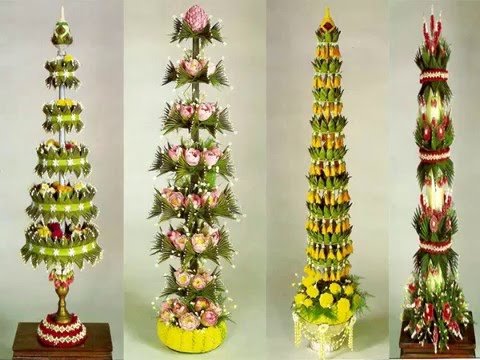 • Cone-in-Bowl (Bai Sri Pak Cham) – A banana-leaf cone filled with rice, topped with an egg and flowers, used for personal blessings.