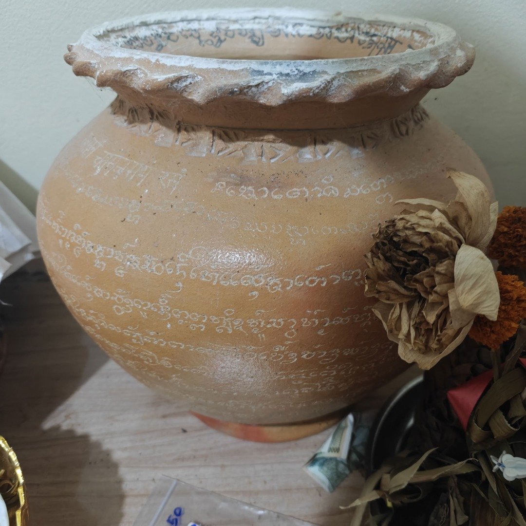 Instead, a clay pot covered in engraved yants holds it together with a small number of selected items.
