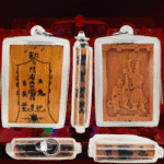 Though simply machine-carved from wood, this piece conceals deep power. It fuses Mao Shan Taoist talismans, known for commanding spirits and warding evil, with Thai yantsโsacred inscriptions of protection and fortune drawn from Thai wicca.