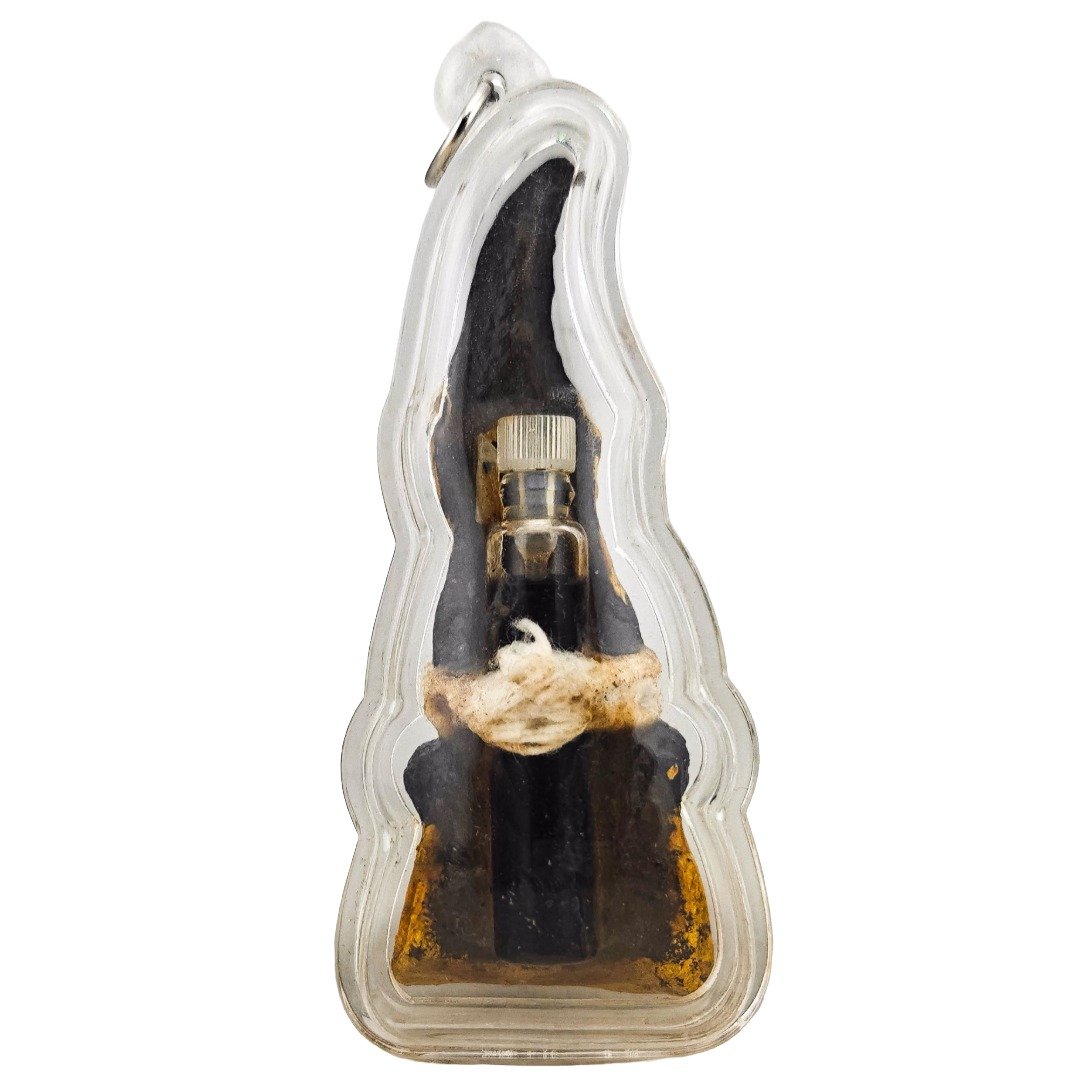 A rare Hakom-powered Ngan amulet by Ajarn Tom, designed for wealth, luck and charm. Simple in appearance, but built with powerful prai and Hakom workings. Less than 20 pieces made, from one of the final Hakom batches.