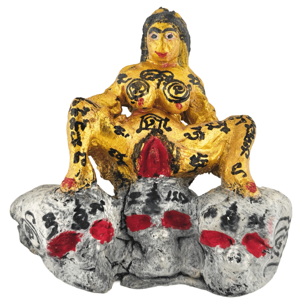 The Mae Per bucha shown here is 𝐛𝐨𝐥𝐝 𝐚𝐧𝐝 𝐬𝐭𝐫𝐢𝐤𝐢𝐧𝐠 𝐢𝐧 𝐝𝐞𝐬𝐢𝐠𝐧, painted in 𝐠𝐨𝐥𝐝 𝐚𝐧𝐝 𝐫𝐞𝐝, symbolizing 𝐝𝐞𝐬𝐢𝐫𝐞, 𝐦𝐞𝐭𝐭𝐚 (𝐥𝐨𝐯𝐢𝐧𝐠-𝐤𝐢𝐧𝐝𝐧𝐞𝐬𝐬), 𝐚𝐧𝐝 𝐫𝐚𝐰 𝐬𝐩𝐢𝐫𝐢𝐭𝐮𝐚𝐥 𝐩𝐨𝐰𝐞𝐫. Her body is inscribed with 𝐬𝐚𝐜𝐫𝐞𝐝 𝐲𝐚𝐧𝐭𝐬 to enhance her 𝐦𝐚𝐠𝐧𝐞𝐭𝐢𝐜 𝐚𝐮𝐫𝐚 and connect deeply with the devotee. The underside reveals 𝐩𝐫𝐚𝐢-𝐢𝐧𝐟𝐮𝐬𝐞𝐝 𝐩𝐨𝐰𝐝𝐞𝐫𝐬 𝐚𝐧𝐝 𝐚 𝐭𝐚𝐤𝐫𝐮𝐭, all sealed and blessed by Ajarn Wanchai himself.