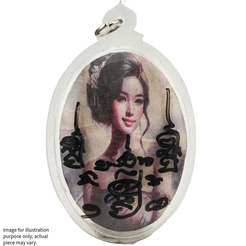 A modern twist on Ajarn Tomโ€™s craft, this mae prai piece blends ancient spiritsโ€”over 30, according to Ajarnโ€”with an AI-generated image of a young beauty, creating a striking contrast between tradition and technology. Simple in appearance but deadly in essence, it houses potent prai materials, a panneng centerpiece with Bua Bang Bai enchantment, and is crafted for the low key titanโ€”quiet, discreet, yet deeply commanding.