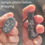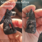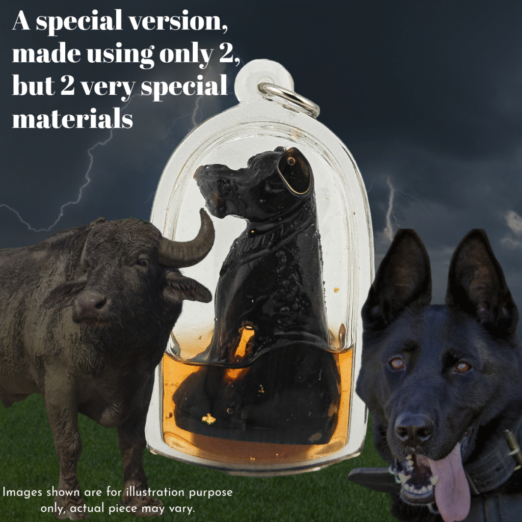 Consecrated by Lersi Pong, this, at first look simple looking amulet is carved into the shape of a dog, with yants on both side (for the smaller one) and wrapped with the oil.