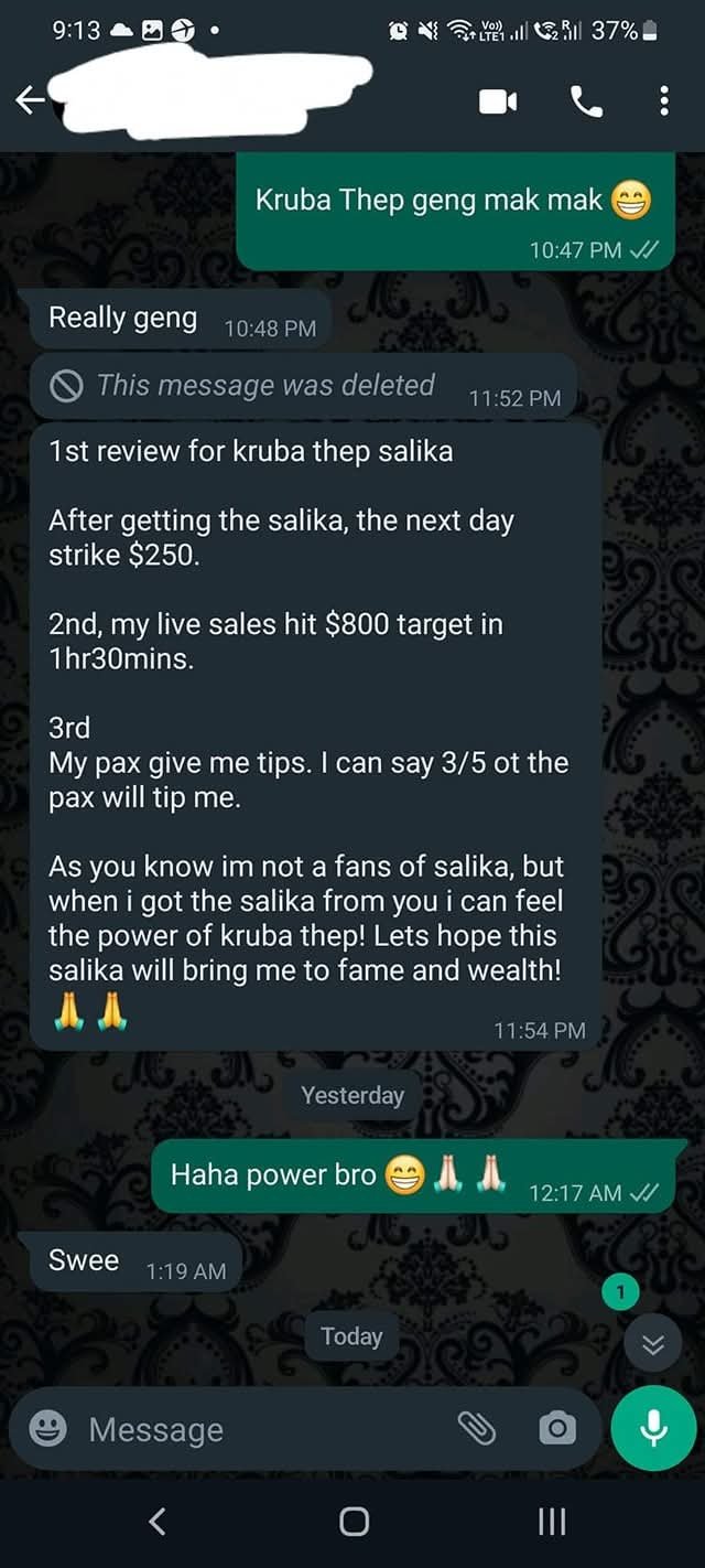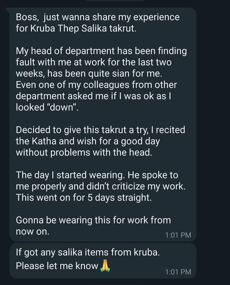 We have seen similar results through other Salika-empowered items. Yet Kruba himself rarely speaks of these miracles, believing that real power shows through results — not words.