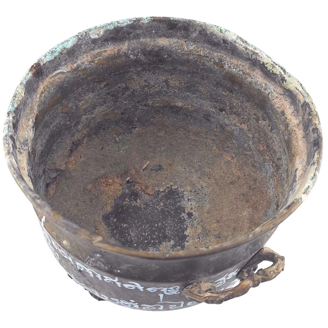 - Natural green verdigris on rim, base, and feet