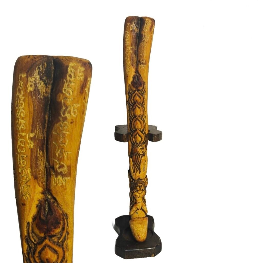 Meticulously & intricately hand carved, it features multiple ladies hugging onto the palakit, with a yoni on top, which is significantly darker in colour; due to the constant rubbing and and play during chanting, and very liking during rituals as well, by Lersi Gee Kong.