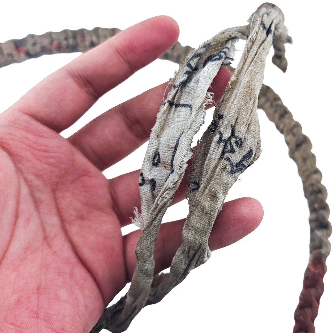 A one-of-a-kind ritual belt, formed from Ajarn’s fire-tested phayant cloth — where everything burned except the yanted parts.