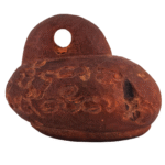 In this case, it is a little unusual, being carved into a bowl like design, meant to signify the yoni, with a protruding tip on the back, meant for attaching to a belt, or string for ease of carry.